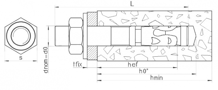 | d nom | L | Размер | t fix | d o | h ef | h min | C min | S | УП |