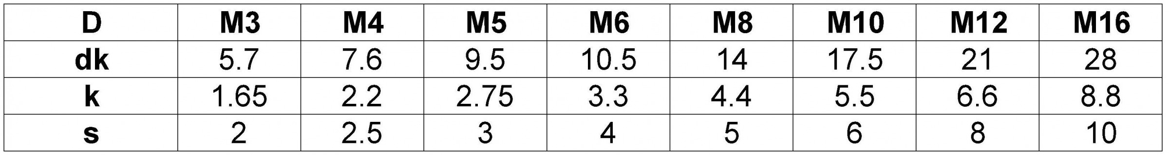Размеры: M3 - M16
