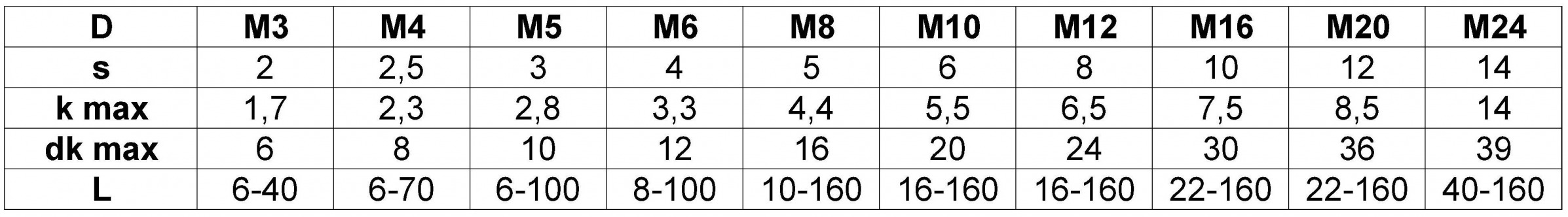 Размеры: M3 - M24